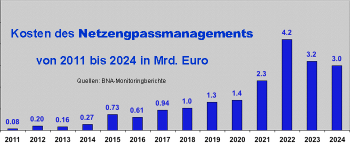 Maßnahmen des "Netzengpassmanagements" von 2011 bis 2024 um