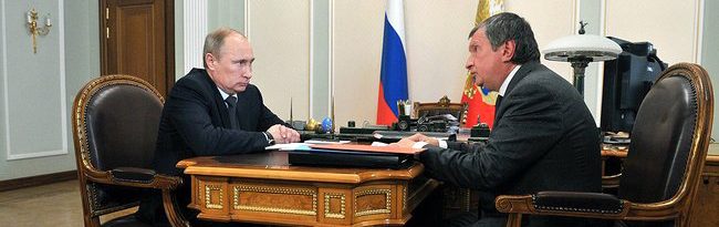 Rosneft-Chef Setschin, den dieses Foto beim Rapport im Kreml zeigt, ist eine wichtige Stütze von Putins autoritärem Regime. Sein Ölkonzern gründet auf der Zerschlagung des Yukos-Konzerns, dessen Chef Chodorkowskij auf Anweisung Putins in einem Schauprozeß nach stalinistischem Vorbild verurteilt und erst nach zehn Jahren Haft wieder entlassen wurde. Seinem langjährigen Freund Gerhard Schröder dagegen will Putin jetzt zusätzlich zu dessen Gazprom-Pfründen einen Posten oder sogar den Vorsitz im Aufsichtsrat von Rosneft bescheren – gerade so, als ob er es darauf angelegt hätte, der SPD ihren mißglückten Wahlkampf endgültig zu vermasseln. Foto: Presidential Website RU